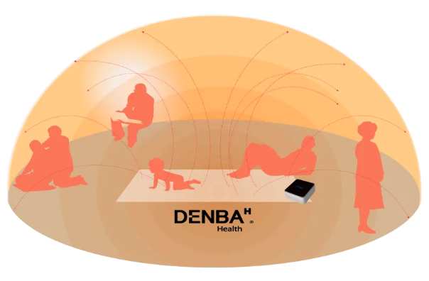 DENBA Healthは、水分子を振動させ、空間全体に効果を発揮しますので、空間内で自由にお過ごしいただけるところが大きな違いです。他の高電位治療器や健康機器は体が触れている場合にしか効果を発揮しません。